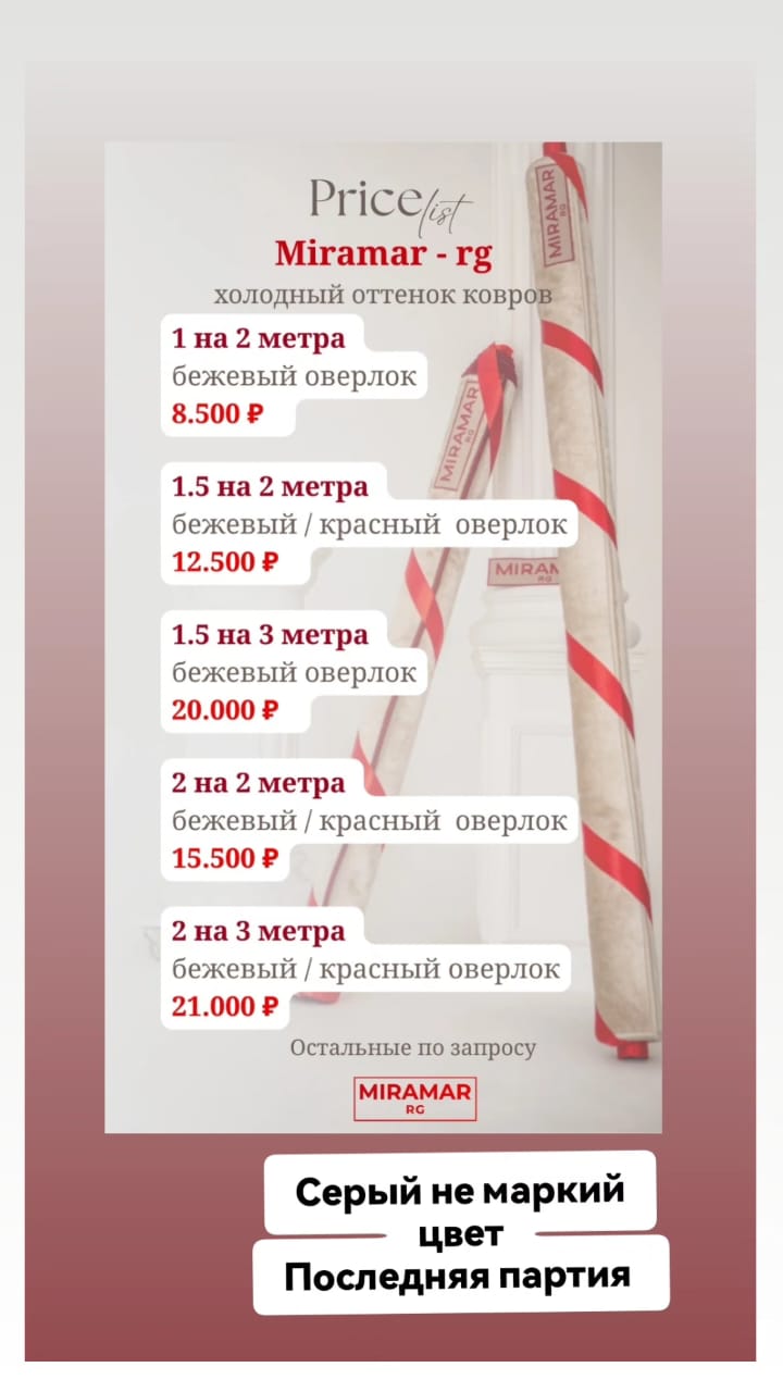 - Ковры всегда в наличии различных размеров и представлены в 2х оттенках ( серый и бежевый)